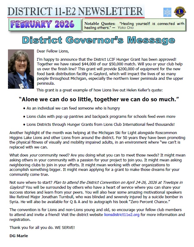 Remember, One Lion can make a difference and have an impact in our communities, district, state and worlwide.
