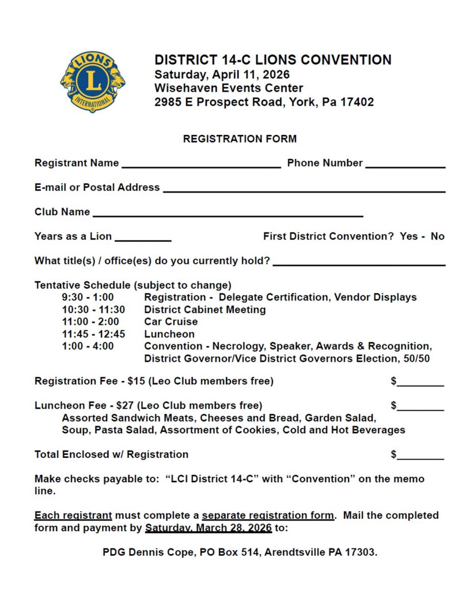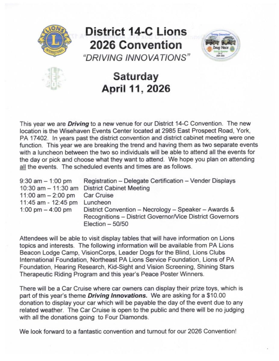 Click on trhe District Convention Image for a printable version.