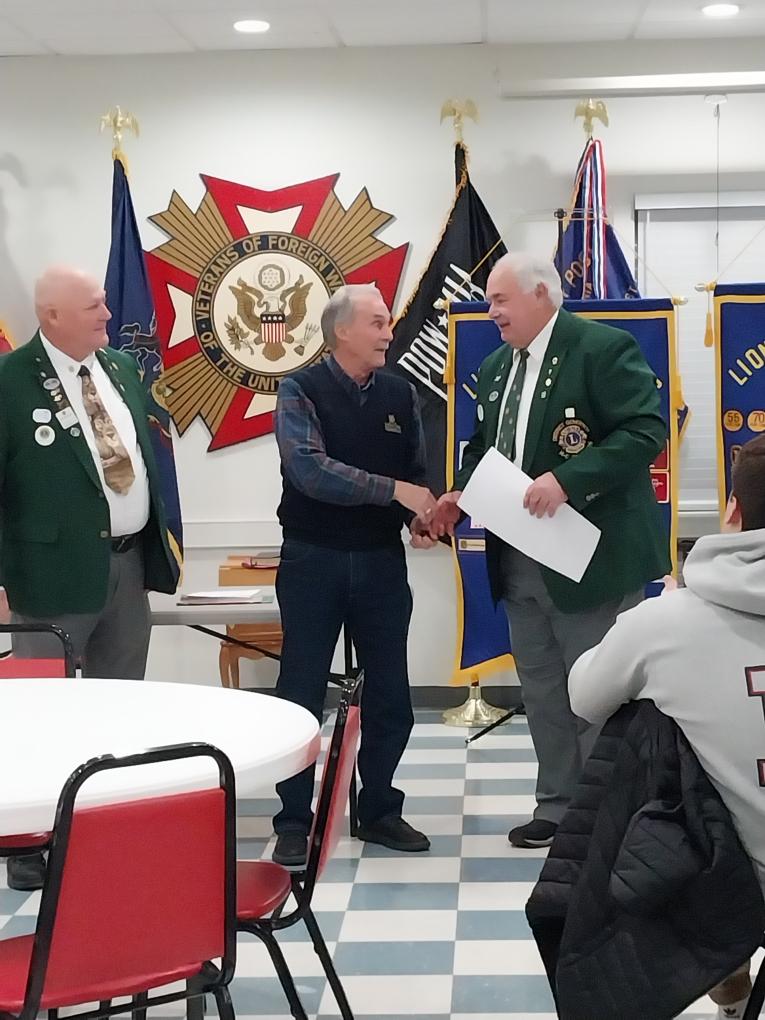 District Governor Doug presents a Progressive Melvin Jones to Carlisle Liosn Jay W. McBride Jr.
