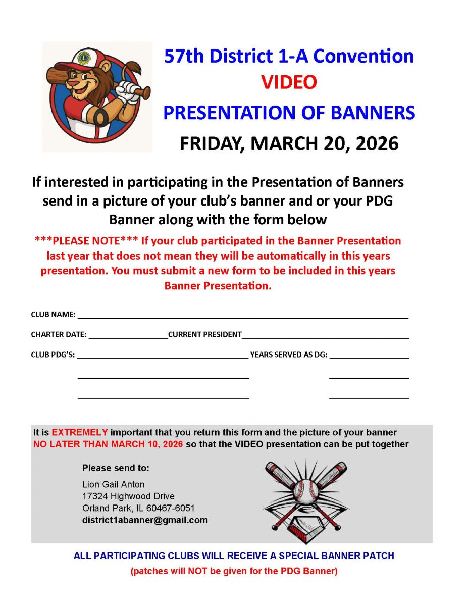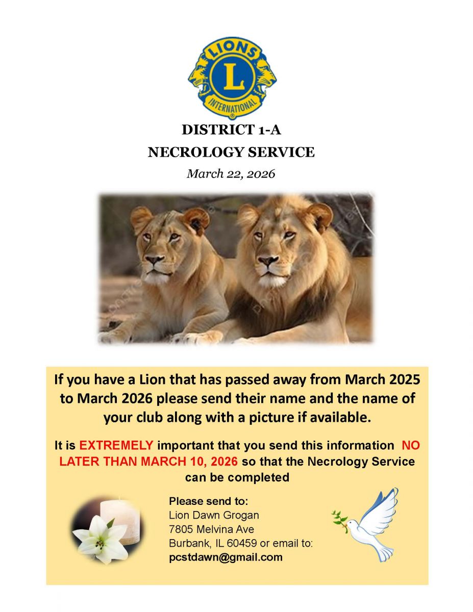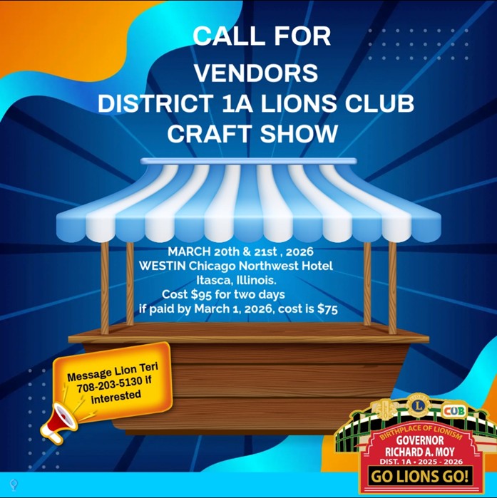 The District 1A Convention for the 2025-2026 Lion Year will be held March 20-22, 2026 at the Westin Chicago Northwest hotel in Itasca, Illinois.