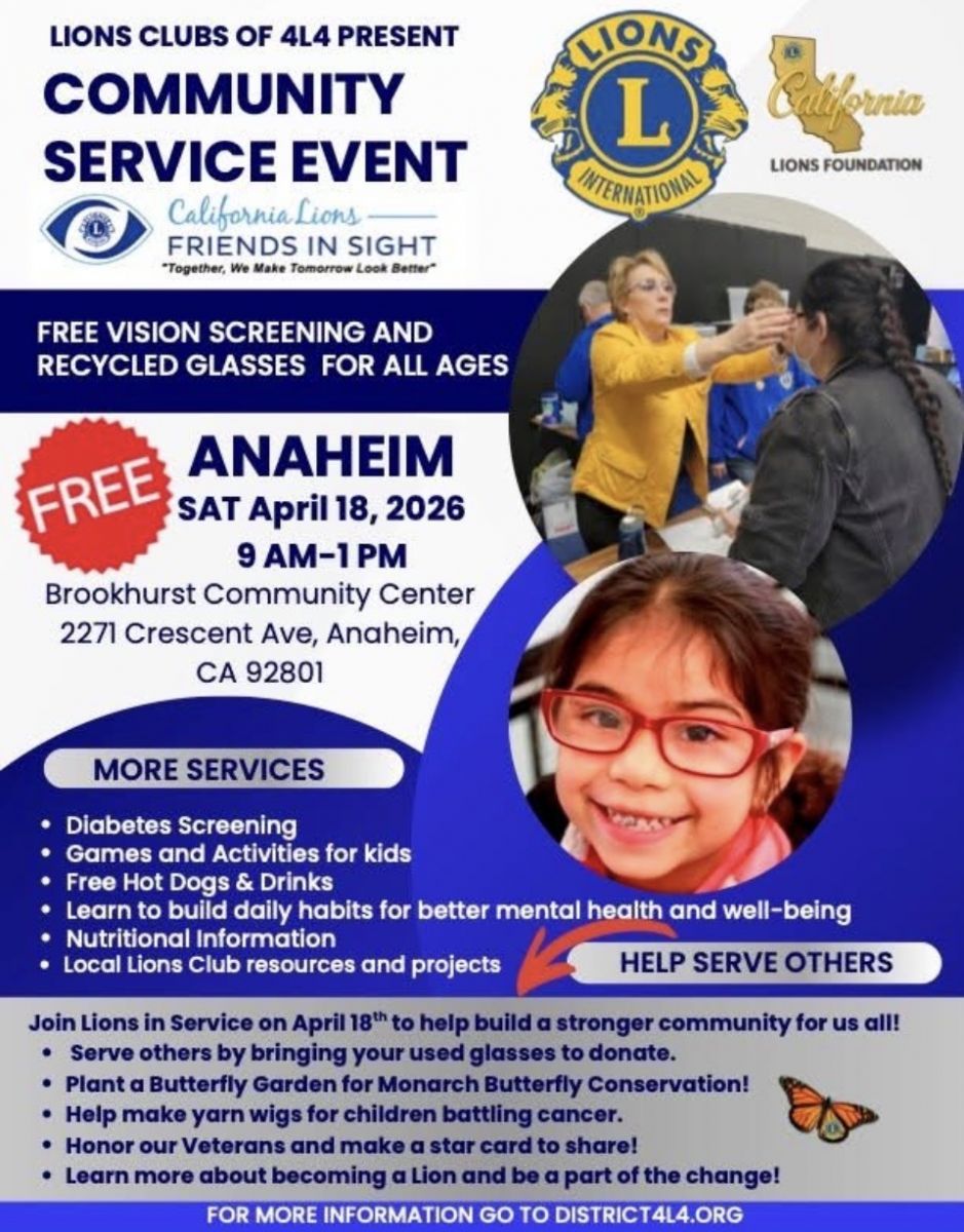 Lions Clubs of District 4-L4 Serving Orange and Inland Empire Communities since 1947