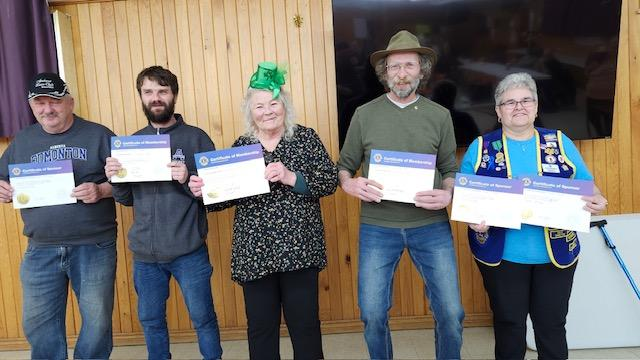 Three new Lions were inducted at the March dinner meeting at the Amherst Lions Club. From left is sponsor Dan Arseneau and Baby Lion George Chappell; new Lions Penny Layne and Bill Koudijs and their sponsor, Lion Sect. Cheryl MacKenzie.