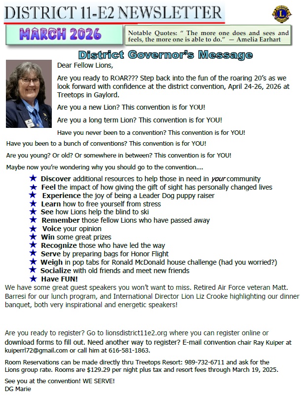 Remember, One Lion can make a difference and have an impact in our communities, district, state and worlwide.