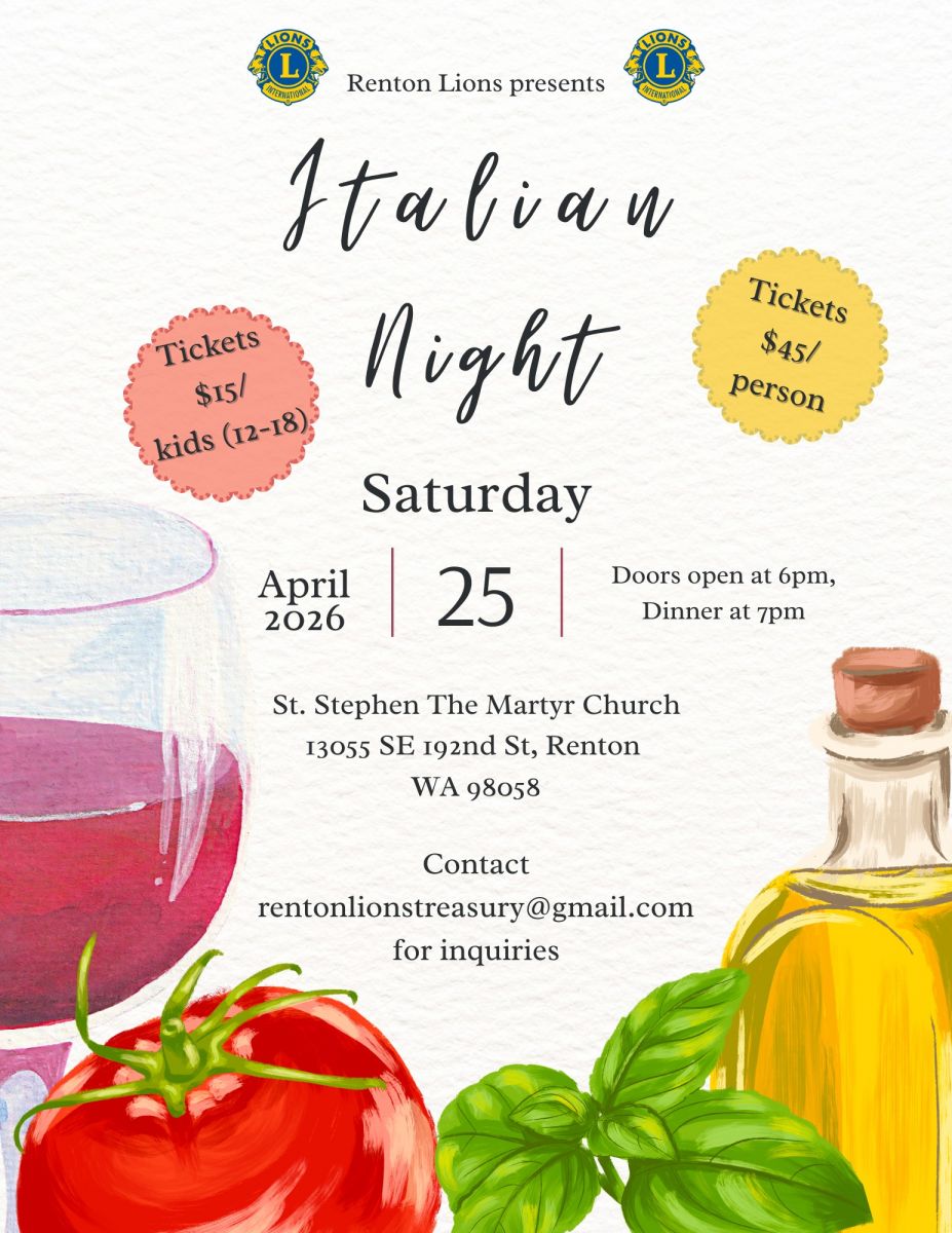 APRIL 25th - ITALIAN NIGHT!  Get your tickets NOW!