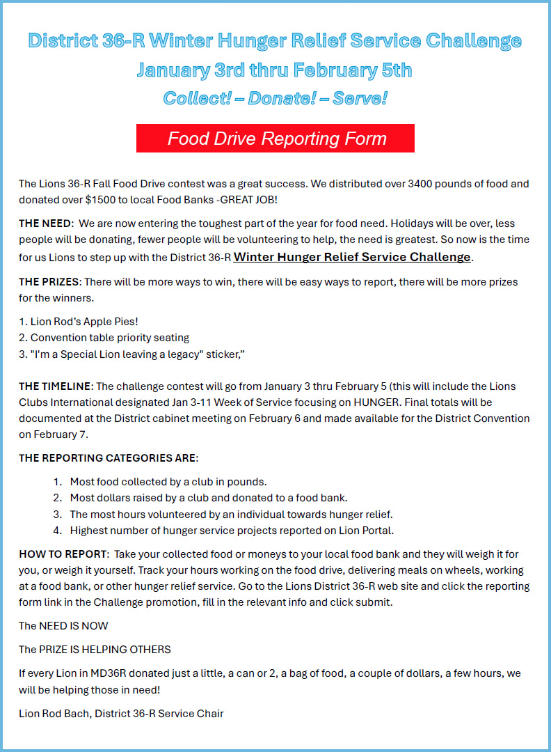 We Serve & We Support The 31 Lions Clubs of District 36-R work to provide sight and hearing assistance for those in need in their local areas. They also perform local service in their communities like conducting roadside cleanups and food drives. Fundraising events are an important part of Lions Clubs activities as many clubs provide local scholarships and other community financial support. Lions of District 36-R proudly help support the following local organizations through financial, volunteer and promotional support. |